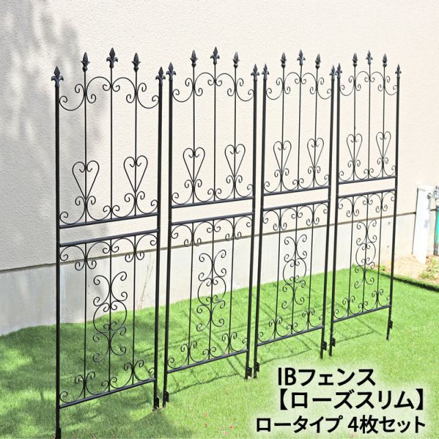 ガーデンガーデン お庭をエレガントに彩る IBフェンス ローズスリム ロータイプ 幅48×高さ155 cm セット ブラック アイアントレリス IBF- -4 P