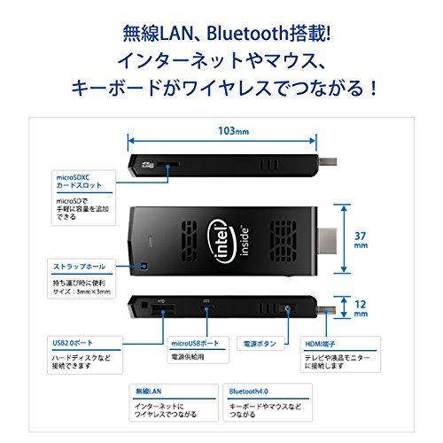 [特長] 手のひらサイズで持ち運びできる! スティック型Windowsパソコン
