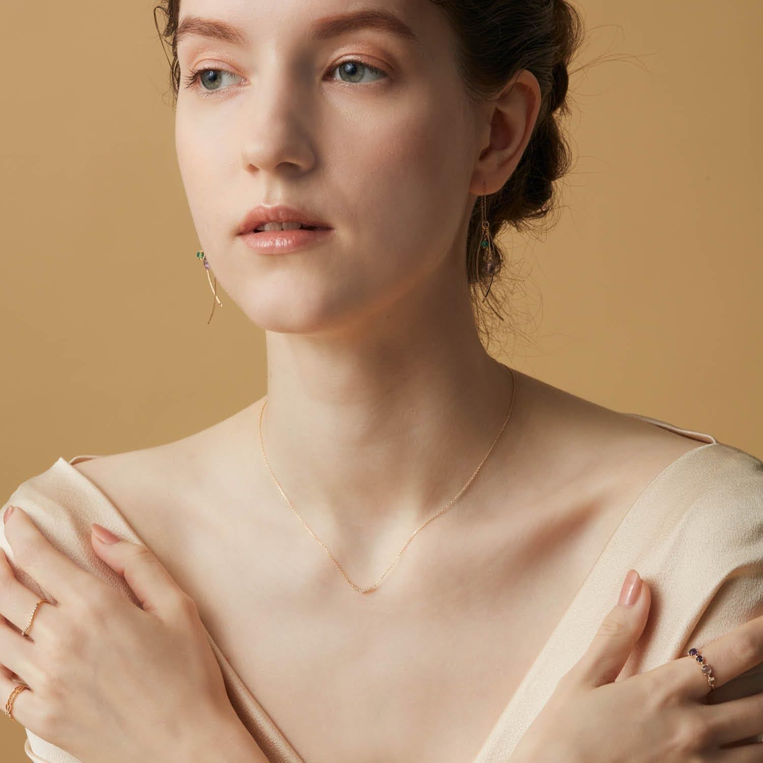 アガットオリジナルでカットしたローズカットを贅沢に使用したリング。 大小のローズカットを交互に配置し、1本で着けても重ね着けをしても動きのあるデザインにしています。 アイオライトやラブラドなど、アガットの秋の定番の石を使いながらも、アメジストやホワイトラブラドを 組み合わせることでゆらめきのある輝きが集まり、幻想的な雰囲気を生み出しています。 全体的に優しい色味ですが、ローズカットがふっくらと高さのあるカットになっているので、 存在感のある仕上がりになっています。 重ね着けをする時には、繊細なリングの間に挟んだり、1番下に持ってきて細身のリングを その上にいくつか重ねて存在感を楽しむコーディネートがおすすめです。 *サイズ直しプラスマイナス1号迄。 *天然石、パール、珊瑚などの素材が含まれている商品は多少の個体差がある場合がございます。 あらかじめ、ご了承くださいませ。