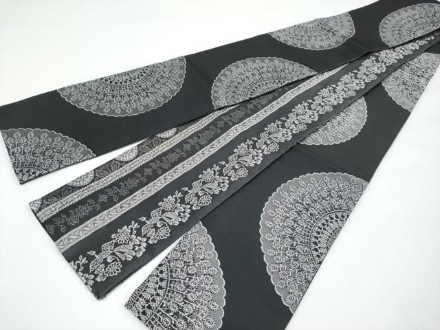 平和屋着物 上 こむさでもーど COMME CA DU MODE 両面 半幅帯 花鳥間道 黒地 s 5