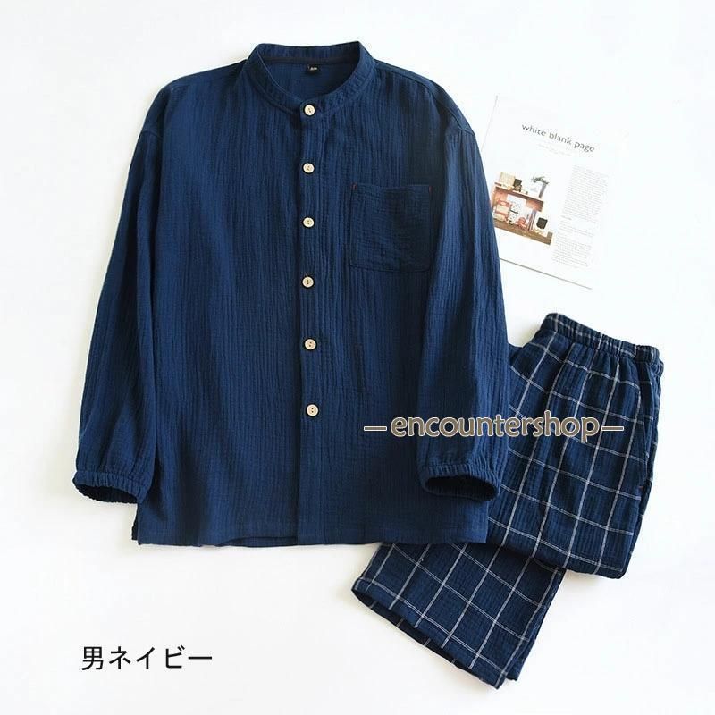 ルームウェア パジャマ 二重ガーゼ メンズ レディース 綿 前開き 長袖 長ズボン 春夏秋 ダブルガーゼ ガーゼパジャマ 冷え性対策 敏感