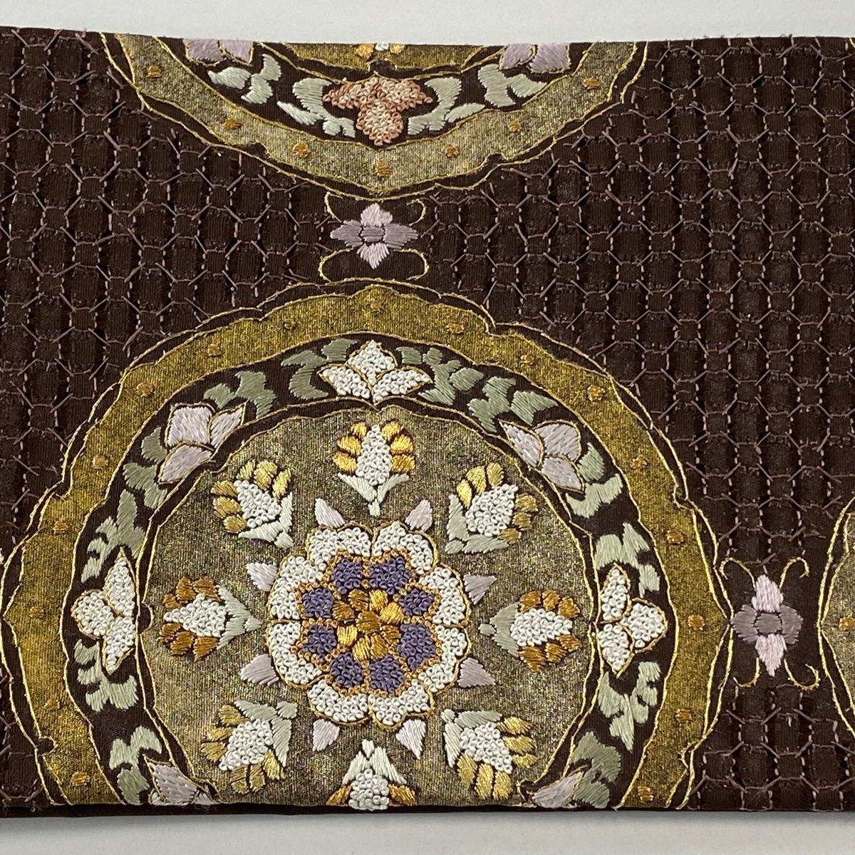 付け帯 作り帯 華文 刺繍 箔 焦茶色 正絹