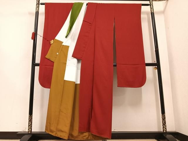 平和屋着物 豪華振袖 色無地 紅海老茶色 正絹 ph