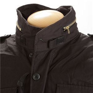 M-65フィールドジャケットは1940年代に採用されたM-43フィールドジャケット、50年代に採用されたM-50・M-51フィールドジャケットの後継として採用されました。両者が5年から15年程度の採用期間に対し40年以上に渡って採用されておりフィールドジャケットの決定版といえるでしょう。それまで着脱式であったフードが収納式になり特徴のある襟は同時期に採用されたパーカー用の防寒フードを装着できました。ECWCSパーカーの普及により、一時採用を終えたとの噂がありましたが、現在でも新型迷彩のM-65が一部の部隊で使用されています。当社の製品は実物よりも着丈を短くしており(サイズ表示はレギュラー丈ですが、ショート丈相当の着丈で、袖丈はレギュラーレングスです。)、実物より小さめの造りになっています。ジッパーはTALON社製ブラスジッパーを使用。生地も実物と同様ナイロン50%、コットン50%を使用しております。