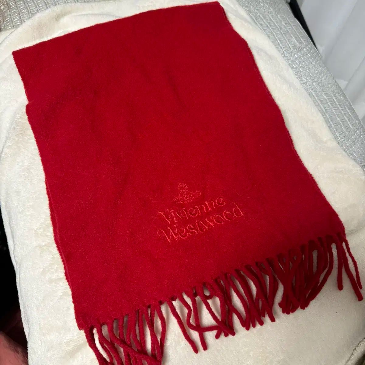 鮮やかな赤のヴィヴィアン・ウエストウッドのマフラー。100% ウール製で、高級感があり暖かいです。ヴィヴィアン・ウエストウッドのロゴが刺繍されており、さらに特別なものになっています。ご不明な点がなければ、すぐに安心してお支払いいただけます!