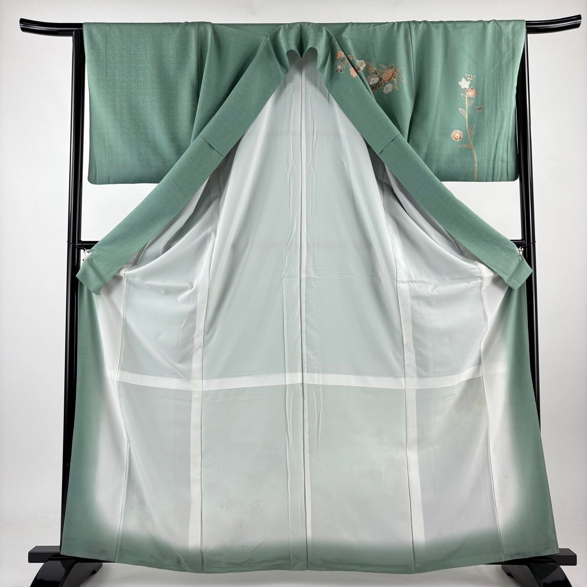 訪問着 身丈164.5 cm 裄丈66.5 M 袷 草花 梅 金彩 刺繍 薄緑 正絹 秀品