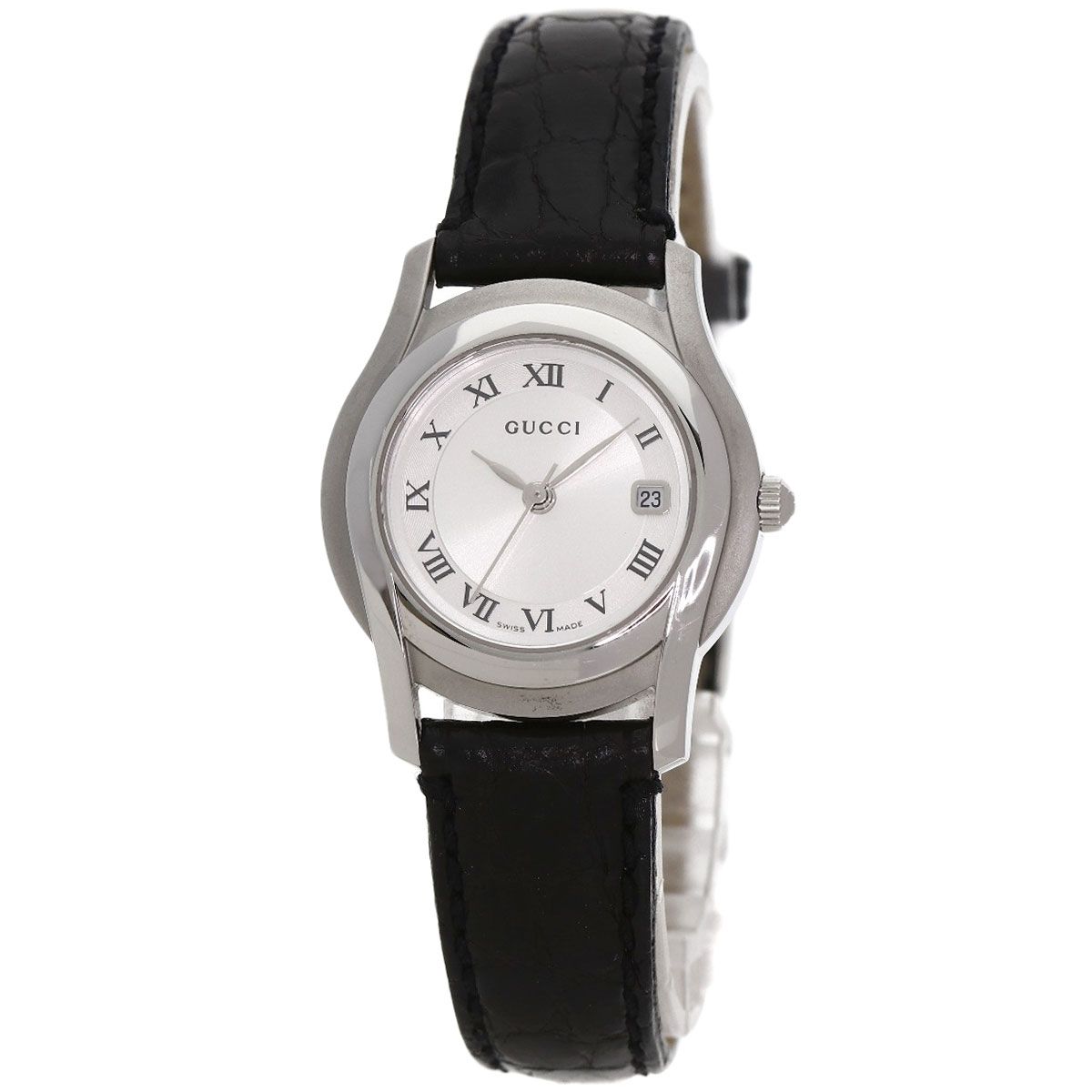 GUCCI グッチ 5500 L ラウンドフェイス 腕時計 SS 革 レディース