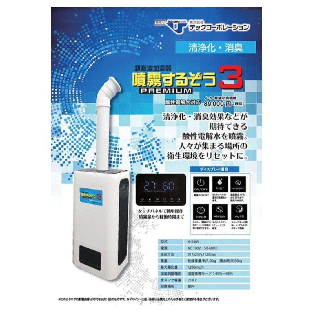 【新品】 噴霧するぞう3 テックコーポレーション 超音波加湿器 大型噴霧器 消臭 電解水 定価9万円
