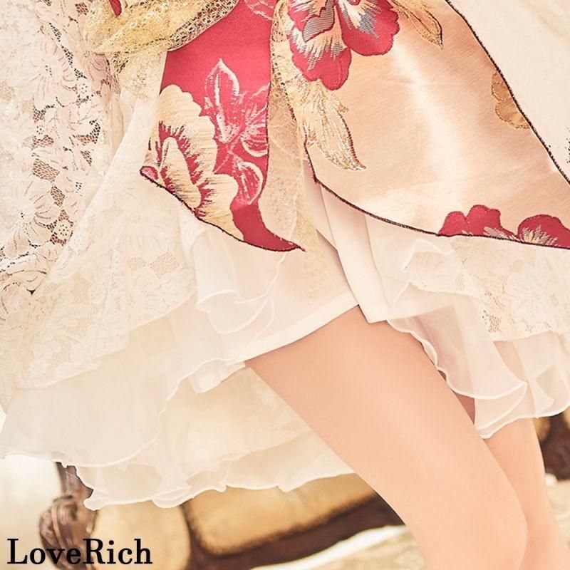 LoveRich ラブリッチ レース フリル オーガンジー 小花柄 ミニ 豪華 帯 花魁 着物 ドレス コスプレ イベント キャバドレス 0944