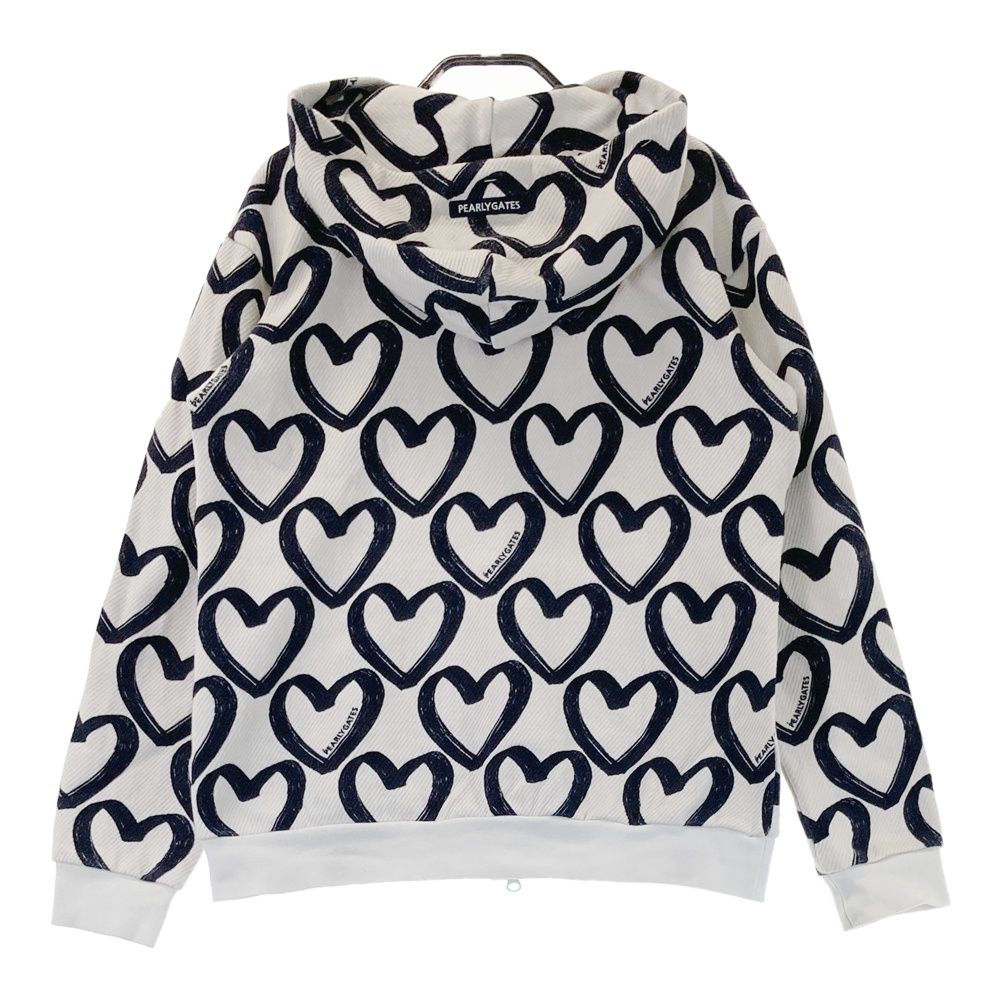 サイズ 2 PEARLY GATES パーリーゲイツ ジップパーカー ハート 総柄 ホワイト系 ゴルフウェア レディース ストスト