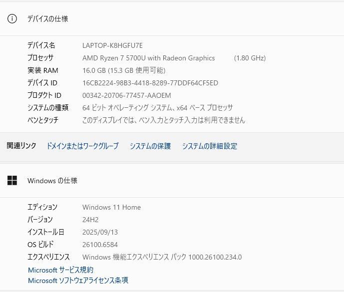 ■CPU:AMD Ryzen 7-5700U (@1.80GHz)