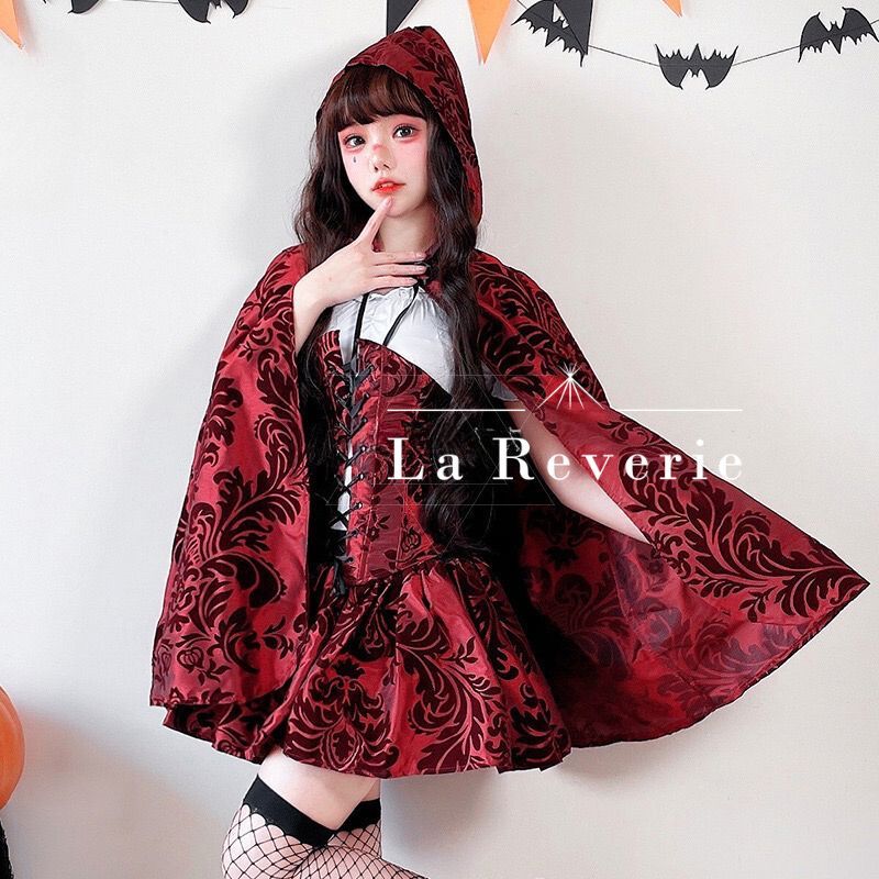 コスプレ 4点セット 赤ずきん 魔女即 OK ロリータ 赤 サブカル ワンピース ミニ 渋谷 原宿 10代 20代 パーティー バンギャ 仮装 イベント衣装 パーティ ゆめかわ ロリィタ コンカフェ kongban 299