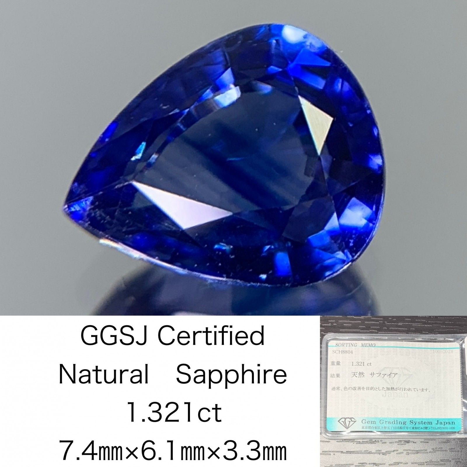 サファイア 1.321 ct 宝石ソーティング付き 7.4㎜×6.1㎜×3.3㎜ ルース 裸石 1698 Y