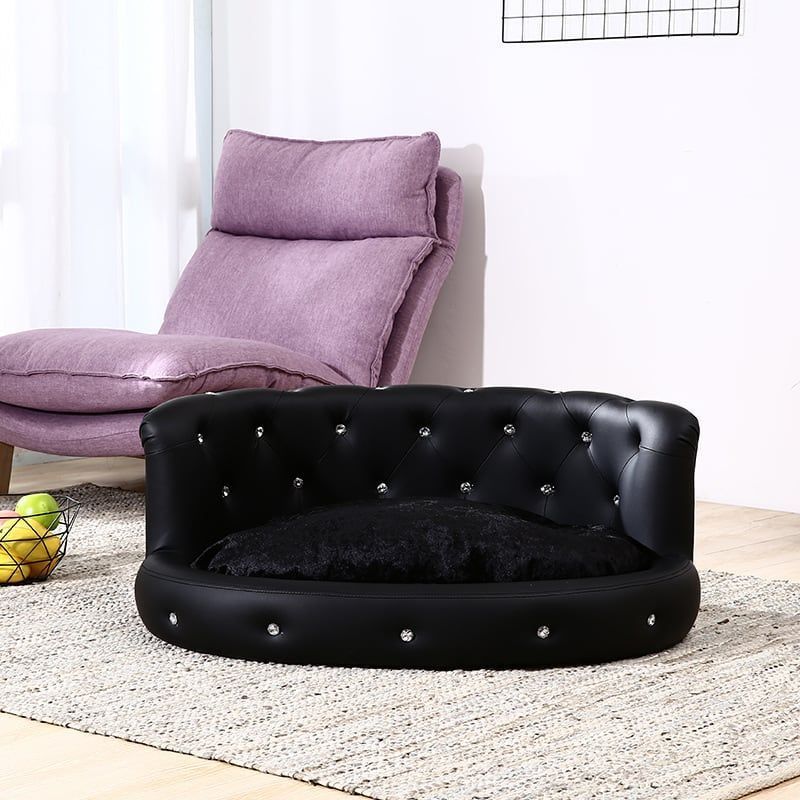 きらきら輝く姫系デザインのペットソファ。ピンク、ホワイト、ブラックの3色展開で、SサイズとMサイズの丸型があります。可愛らしいデザインだけでなく、高品質の素材で作られているので、快適な寝心地が保証されています。