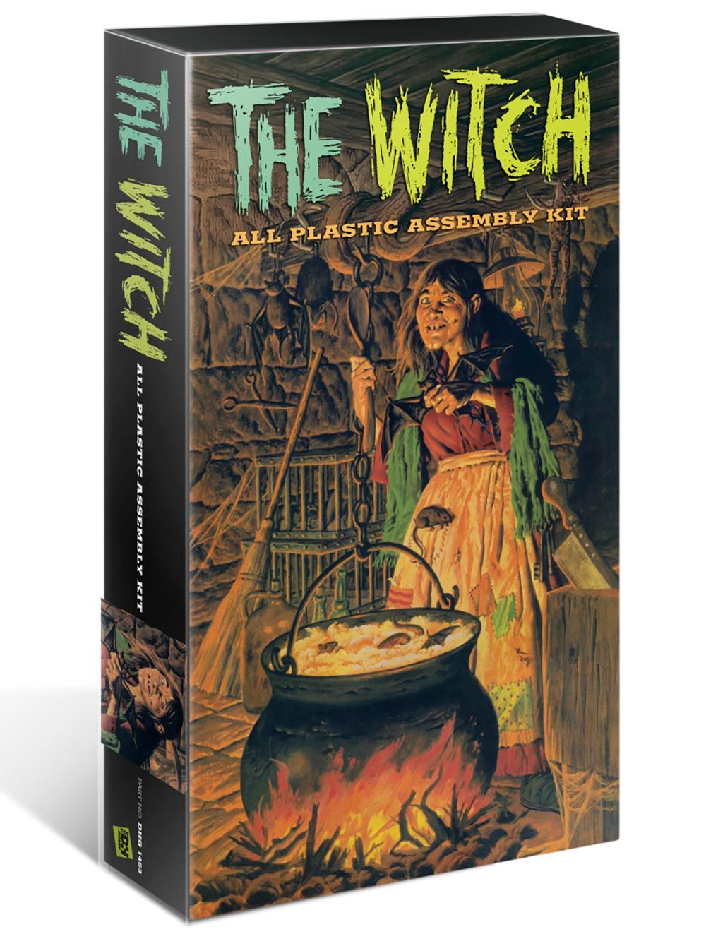 スケールは1/10で仕上がりの高さは約150mm。パーツ点数は60点で主役の魔女はもちろん、魔女の絵に欠かせない大鍋や石を積み上げた壁の一部などをモデル化したディスプレイベースも用意されています。魔女は長い髪に大きな鼻、鍋の中をかき混ぜる大きなスプーンを右手に、左手には鍋に入れるコウモリを持った姿を再現しています。