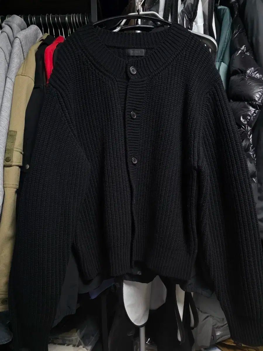モマデザイン ウール ラウンドネック クロップド ニット カーディガン ブラック 48 100