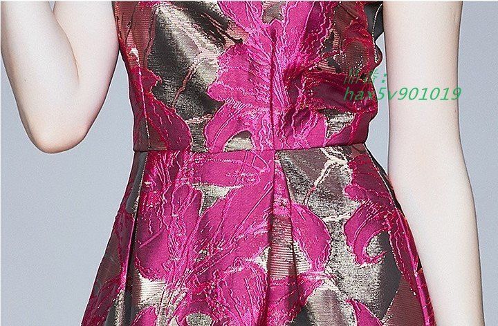 ワンピース M-3 L ゴージャス ジャガード織 花柄 感 結婚式 ロング ノースリーブ 通勤 202111 202112 フ ー パーティ おでかけ hax 5 v 901019