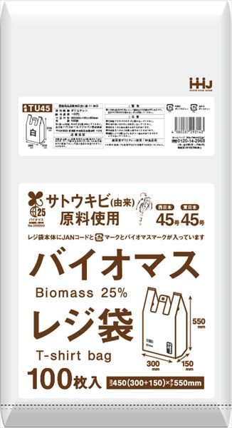 ■【商品内訳】:TU45バイオマス配合25%レジ袋45号白100枚×20点セット