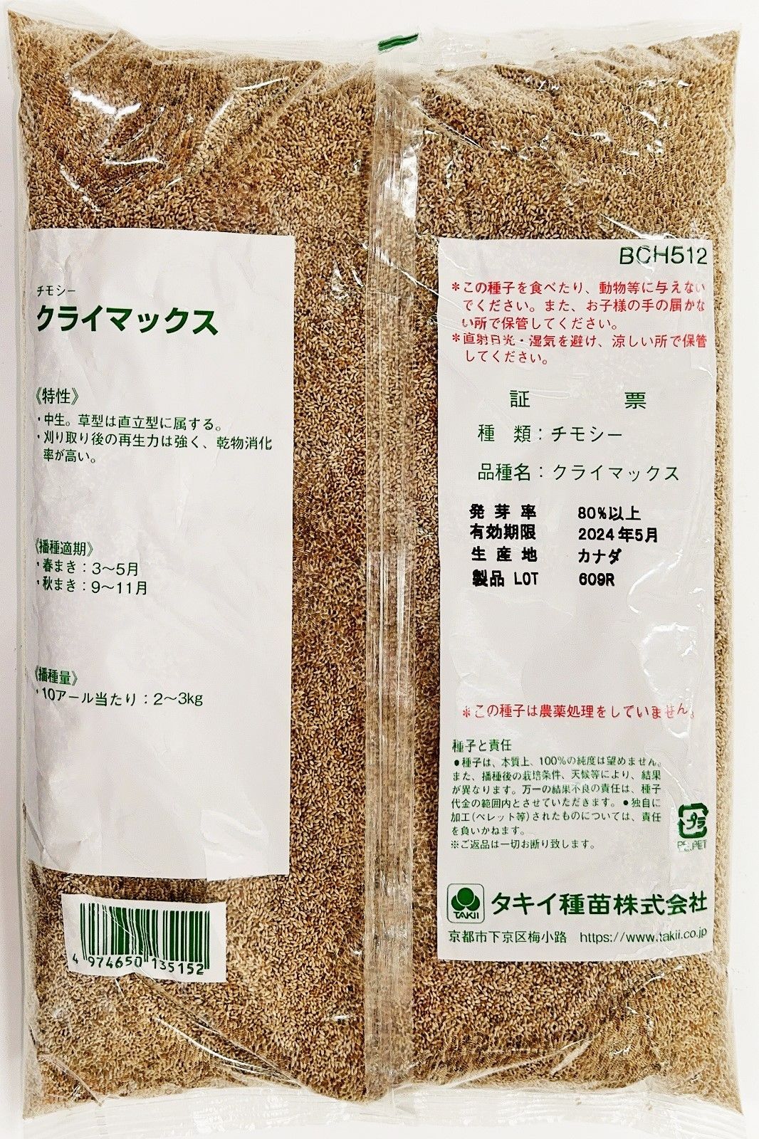 チモシー種子 クライマックス 10 kg タキイ種苗 種 牧草の種 ウサギ
