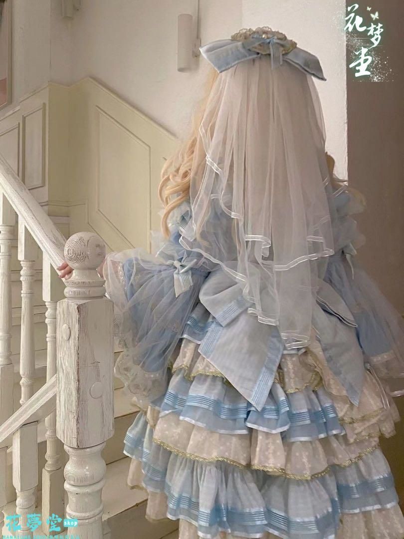 水色のチュールとレースを使用したゴスロリスタイルのドレス。