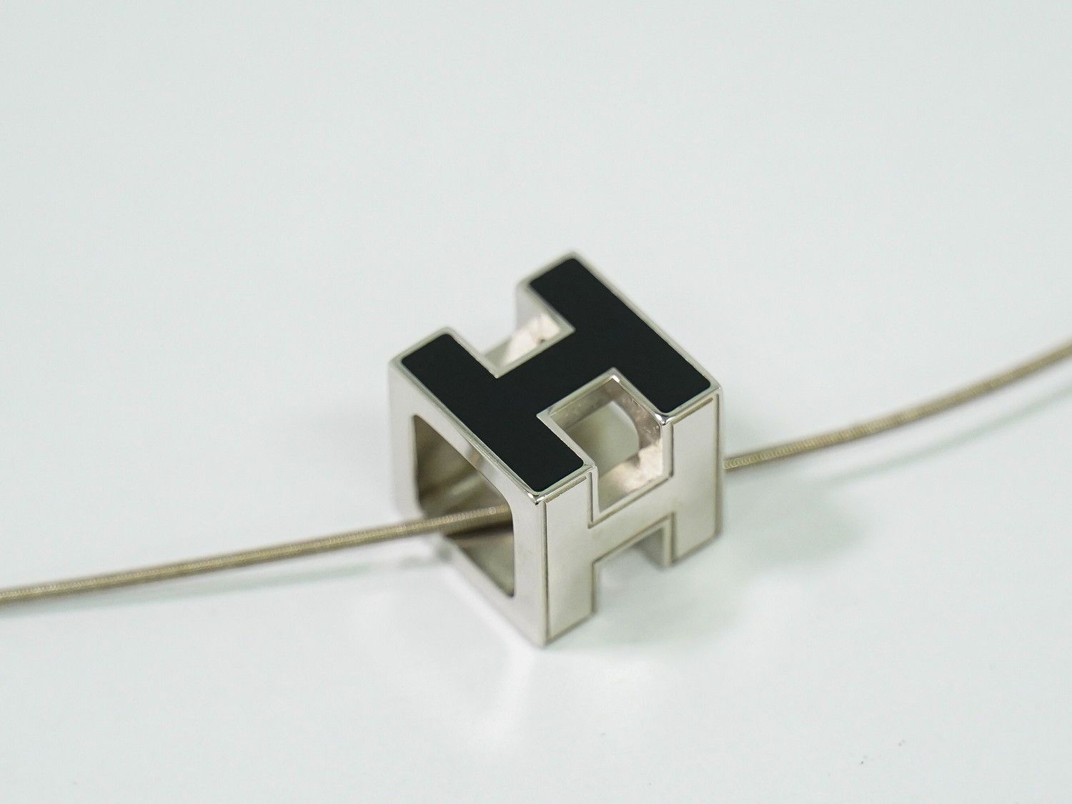 エルメス HERMES Hキューブ ネックレス ペンダント メタル シルバー金具 ブラック ジュエリー フォロー割