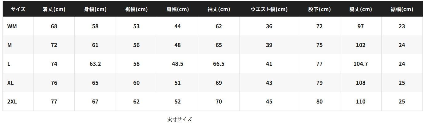 ■サイズ: M/L/XL/2XL(実寸サイズ表をご参照ください)