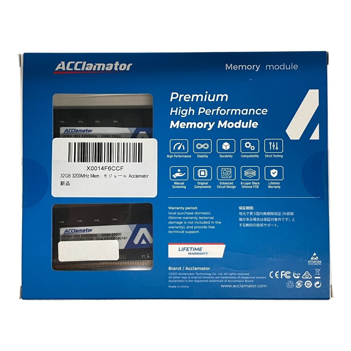 こちらは「Acclamator DDR4 16G 3200MHz Micronチップ PC4-25600 2枚 メモリ 」でございます。