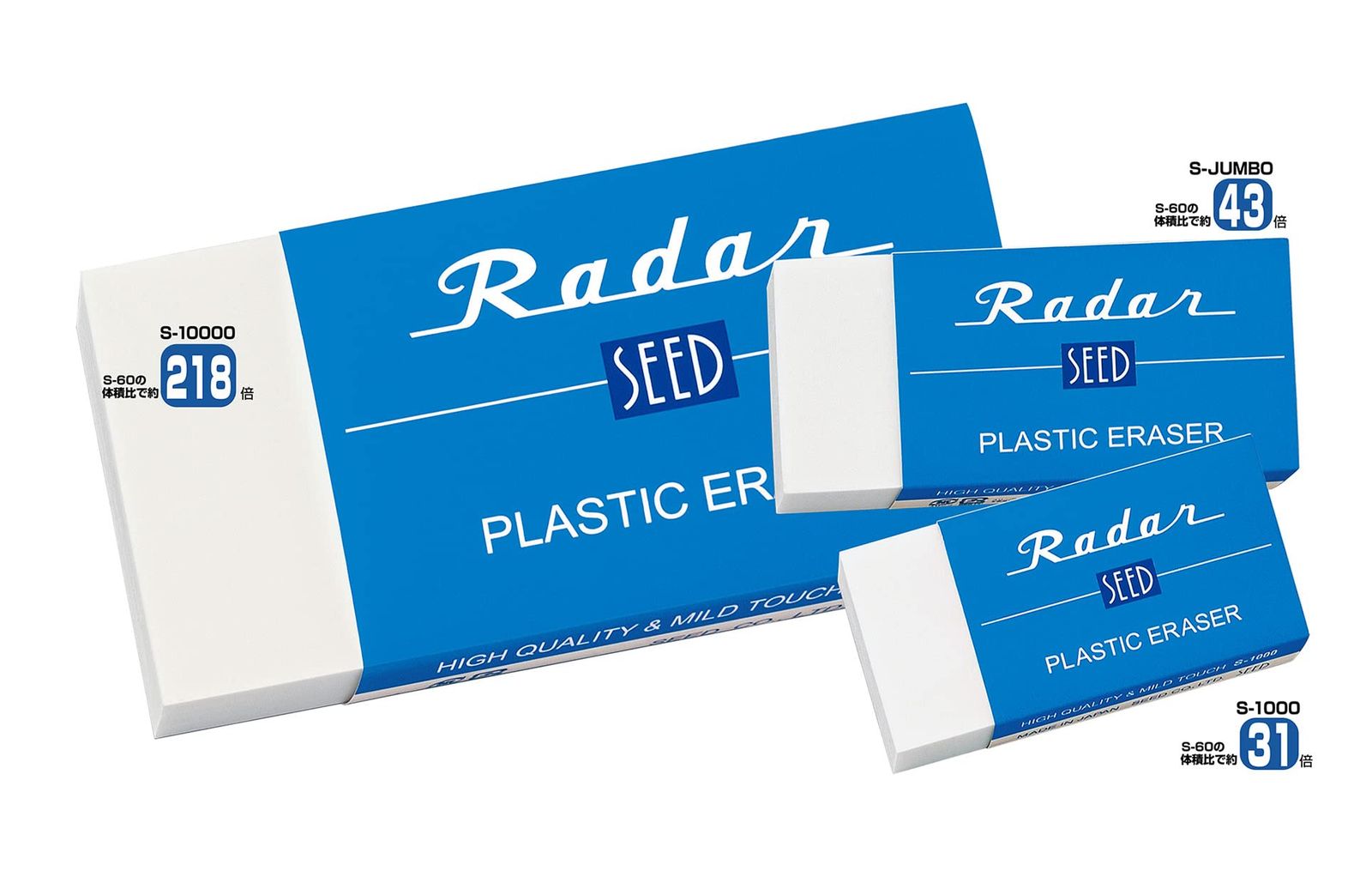 【Radar】「青いケースの消しゴム」で親しまれている、1968年発売の高性能で高品質のプラスチック字消しシリーズ