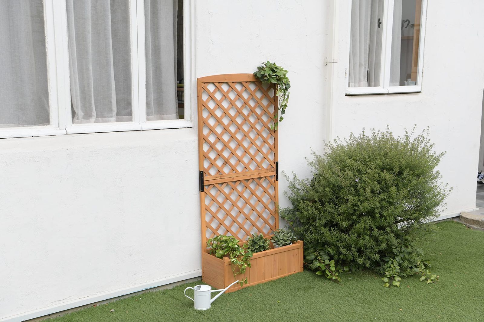 ●お家の玄関をオシャレに。鉄製のフェンスが付いたプランターラック壁面を緑化することで立体感のある安らぎ空間を演出でき、緑が見た目にも優しく、落ち着きます。