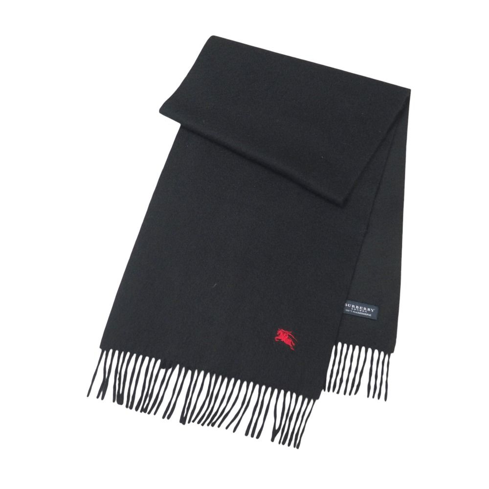 バーバリー マフラー 総カシミヤ フリンジ ストール ロゴ刺繍 ブラック ブランド古着 RA 6208