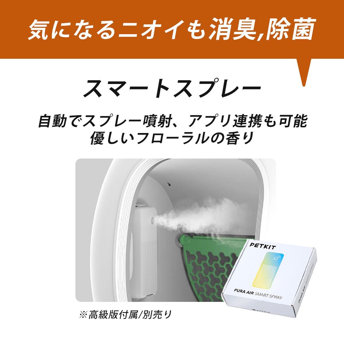【殺菌・消臭・自動クリーニングで清潔・快適生活】 超強殺菌力,驚く!猫トイレ掃除が終わると,専用デオドライザースプレーは自動で噴射し殺菌消臭を行い,ウイルスや細菌、ダニなど死滅させます。 猫の病気、ヘルペスなどの伝染病の感染防止に有効。*消臭物は別売り