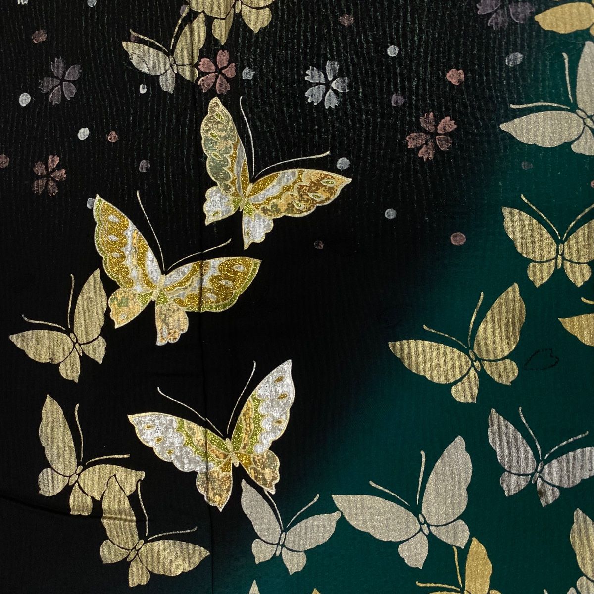 振袖 身丈159 cm 裄丈66 M 袷 蝶 桜 金銀彩 ラメ 黒 正絹 秀品