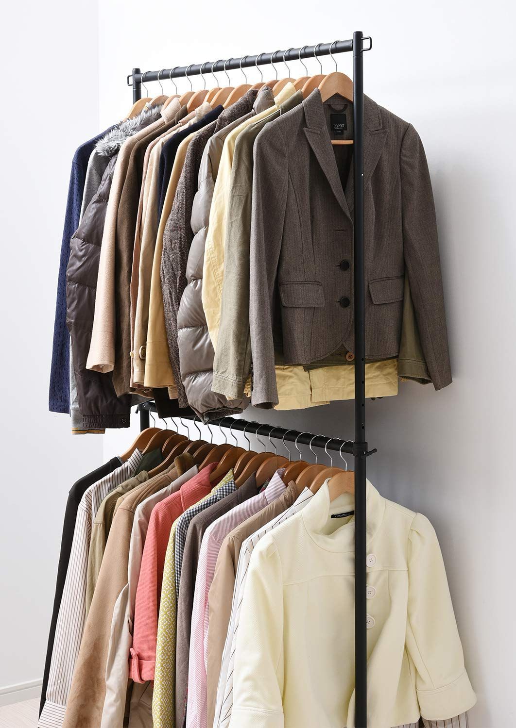 [山善] ハンガーラック 頑丈 耐荷重120kg 2段 高さ伸縮 キャスター付き 96×41×130-190cm マットブラック YIH-2S(MBK)