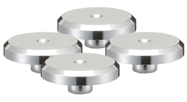●サウンドマジックのXU03FSS、XR03FSSガラスラック用のクロームスパイク支柱CSB50をガラスボードに受けるスパイク受です。