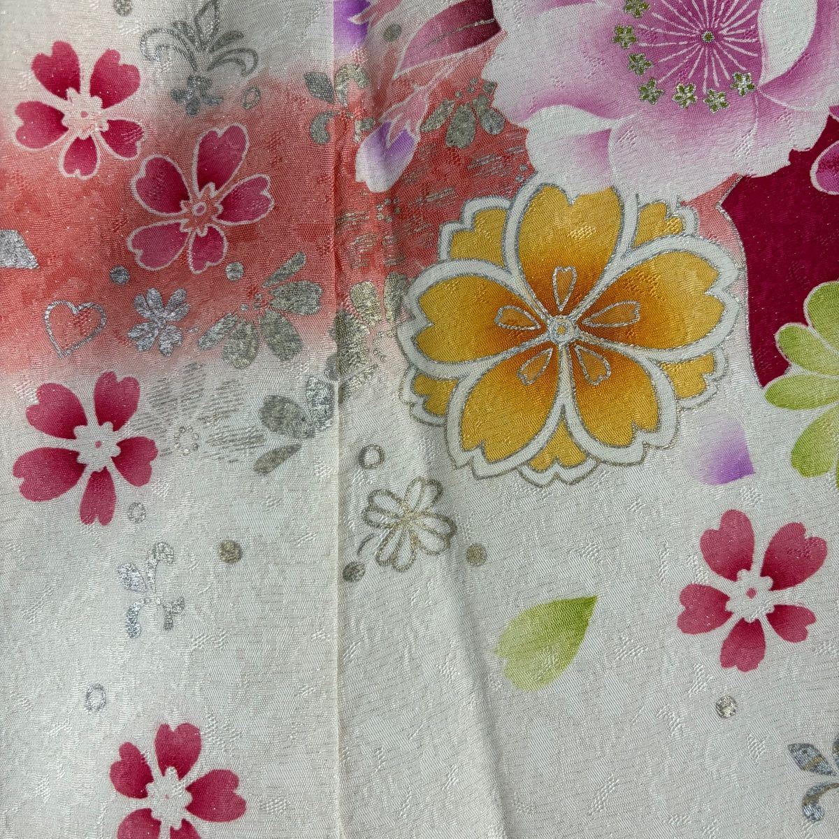 振袖 身丈170.5 cm 裄丈69.5 L 袷 牡丹 桜 刺繍 銀通し クリーム 正絹