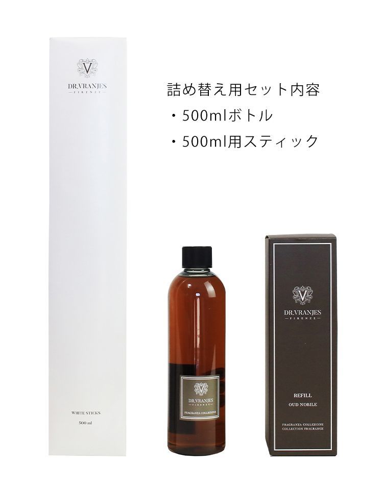 ドットール ヴラニエス リフィール 詰め替え リフィル フレグランス ウードノービレ OUD NOBILE Dr. Vranjes Collection REFILL 500 ml mlスティック付き