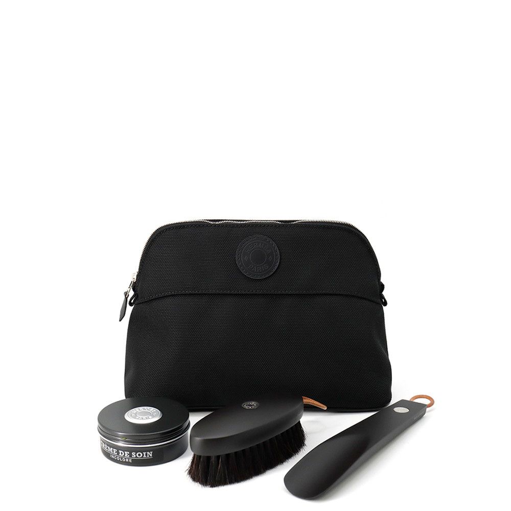 エルメス シューズケアセット ボリードポーチ ブラック/シルバー金具 キャンバス HERMES 黒