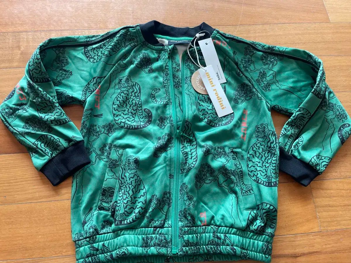 タグ付きミニロディーニ 虎 パータン ジャケットです。グリーン カラー バターンに可愛い虎 絵 が描かれています。ダッフル アウター スタイルなので アイ が楽に 入る あります。コメント 無ければ 馬狼 安全決済 して くださる 良いです!