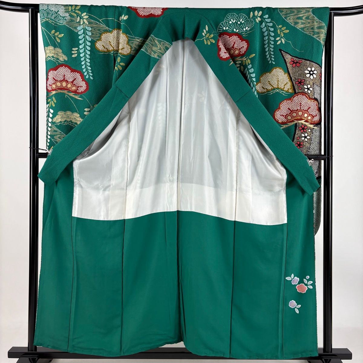 振袖 身丈157 cm 裄丈64 M 袷 笠松 几帳 絞り 金糸 緑 正絹