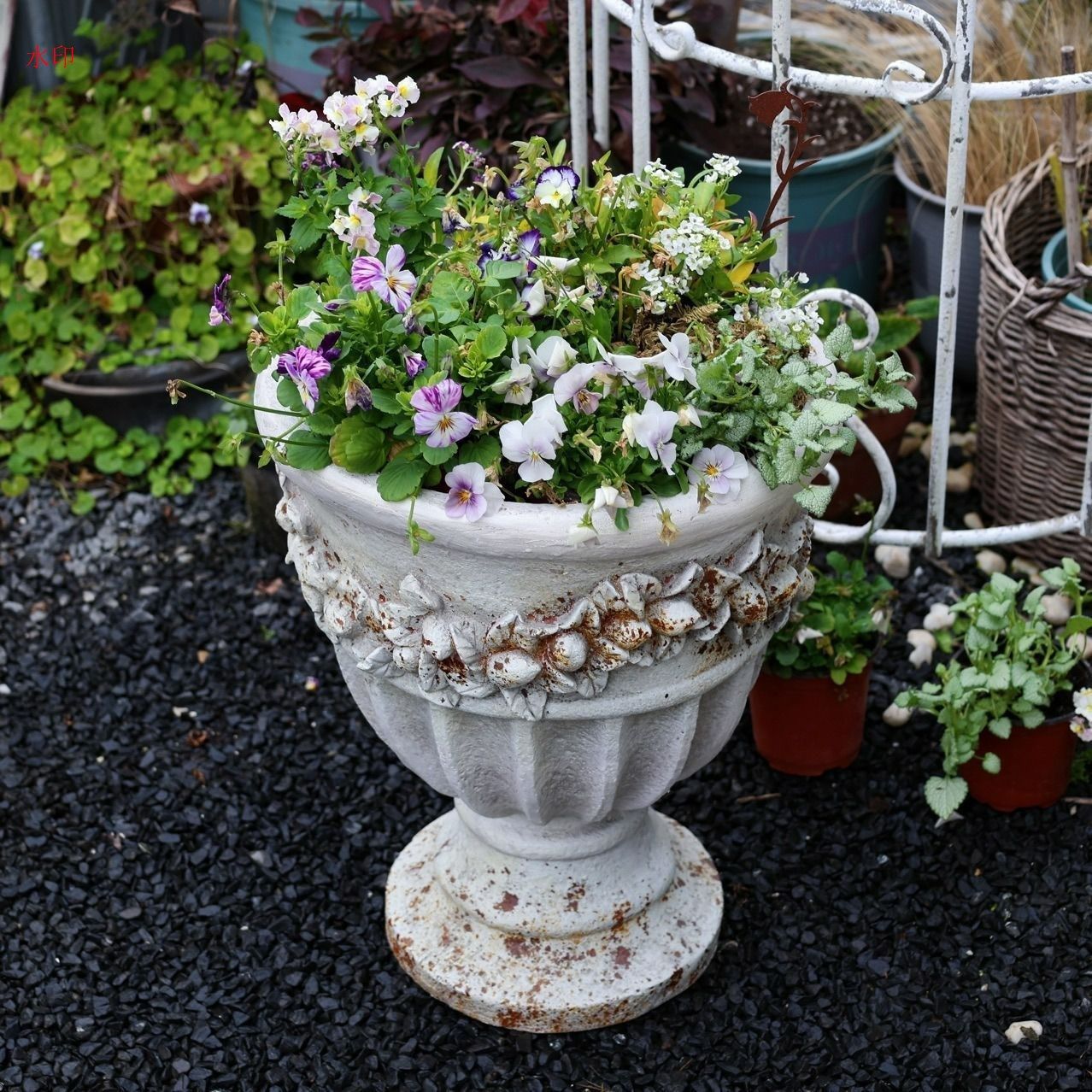 プランター ヴィンテージ調 レリーフ ホワイト 白 シャビー加工 シャビーシック 彫刻 エレガント ガーデニング 雑貨 ガーデン雑貨 ガーデンインテリア ガーデン インテリア 庭の装飾 お洒落 おしゃ