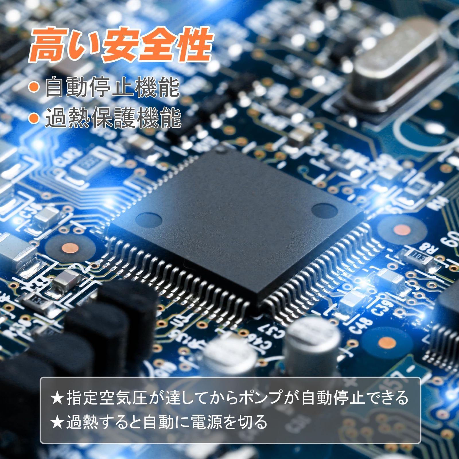 【自動停止機能?過熱保護機能】目標圧力値が達してから電動空気入れが自動的に停止できます。また、電動エアーポンプは過熱すると自動的に電源を切ります。ダブル保護機能があるこそ、安心にご利用いただけます。