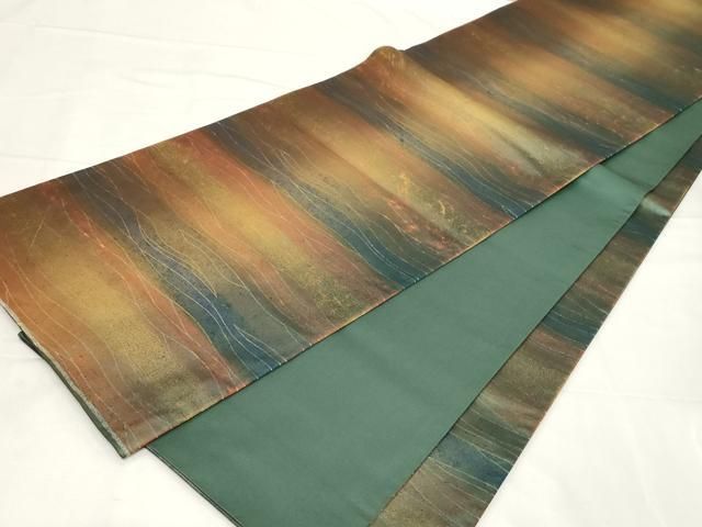 平和屋着物 石川県指定無形文化財 牛首紬 白山工房 手織り 全通柄袋帯 霞文 金彩 正絹 dy