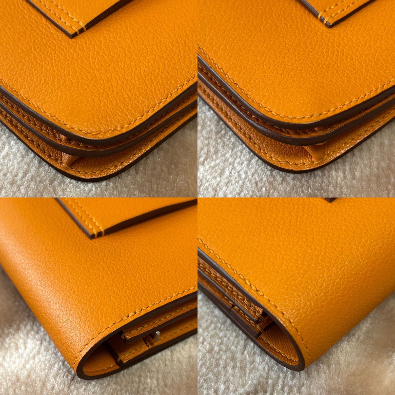 HERMESエルメス ウォレットコンパクトウォレットコンパクト財布ウエストポーチコインケース付き財布小銭入れ有さいふサイフシンプルウォレットスマートウォレットベルトバッグフラップブラウン茶色オレンジC 2018年製造レザー ×3