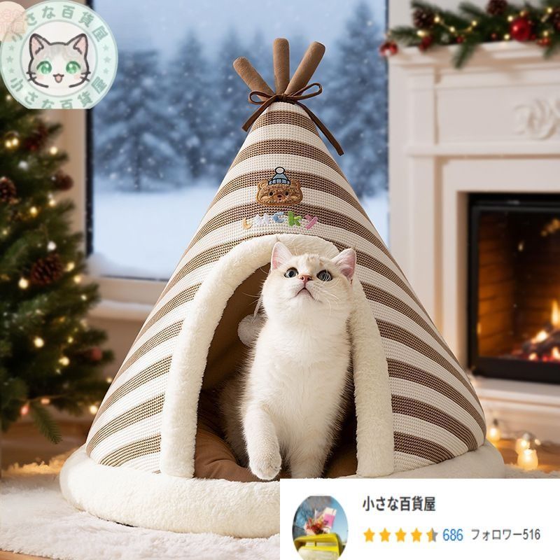 オールシーズン対応の暖かいキャットベッド。二色テントデザインで、冬と秋に最適な厚手素材を使用。猫や小型犬用で、室内外両方で使用可能です。組み立て不要で、すぐに使用できる便利なアイテム。ペットへの完璧なクリスマスギフトとしてもおすすめで、遊び心あふれる動物デコレーションが特徴。耐久性に優れ、長期間使えます。