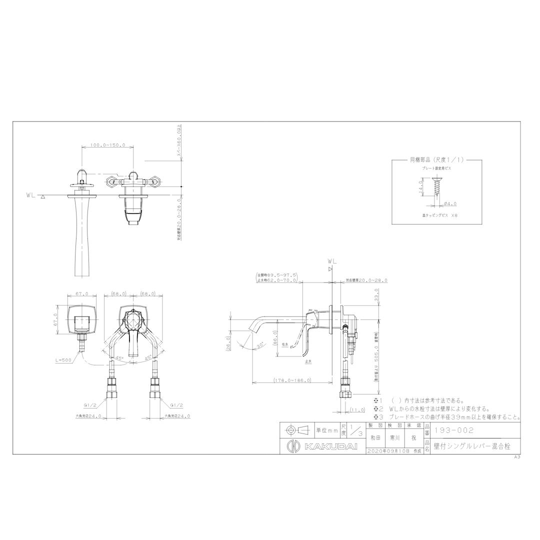 商品名:壁付シングルレバー混合栓