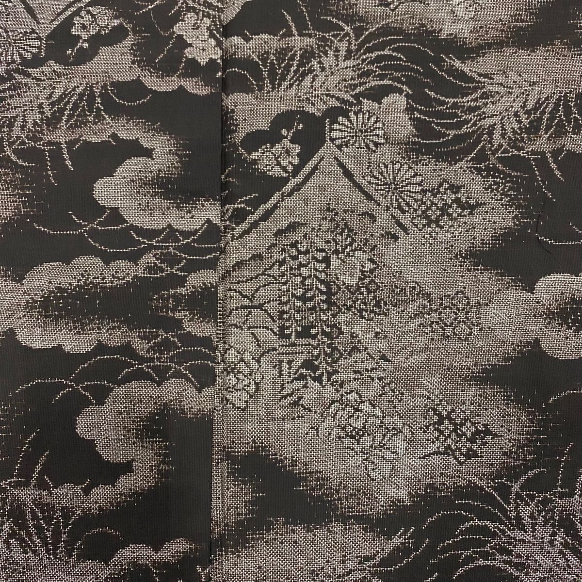 大島紬 身丈168.5 cm 裄丈69 L 袷 証紙 雲文 草花 純泥染 焦茶色 正絹