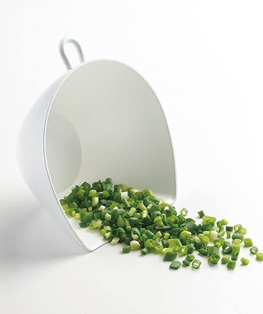 まな板の上で切った食材をサッとすくえる、チリトリボウルとチリトリザルのセットです