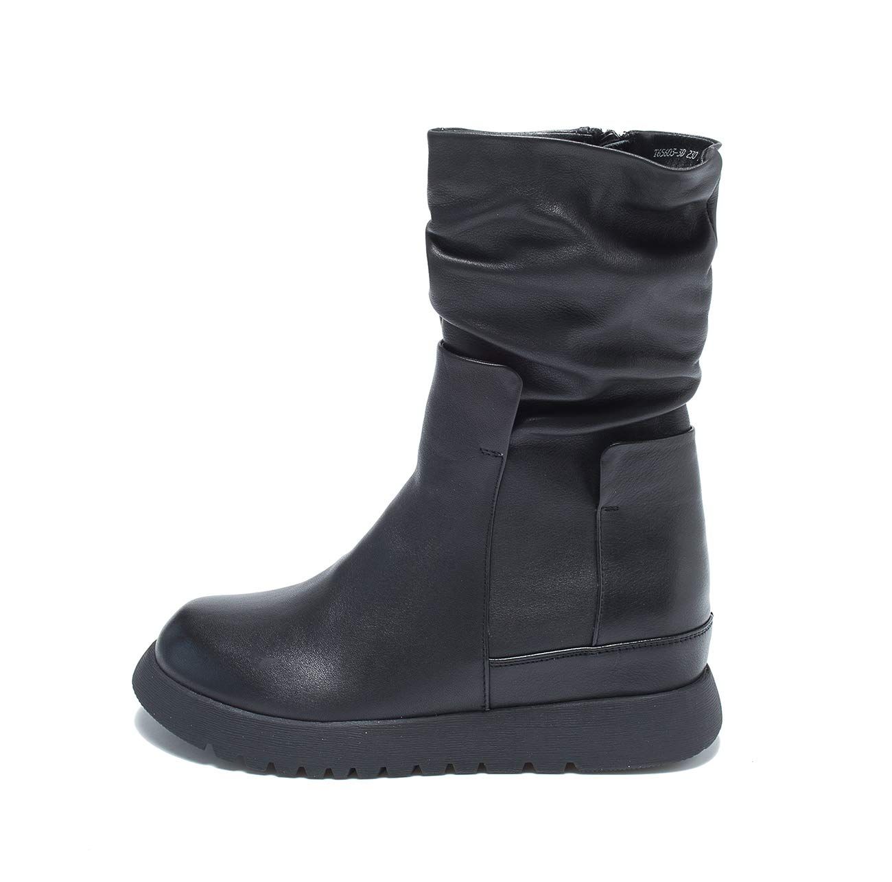 [ZUYEE] (ズイェ) レディース ショートブーツ 本革 サイドジップ 厚底 インヒール 歩きやすい カジュアル ブラック 24.0cm