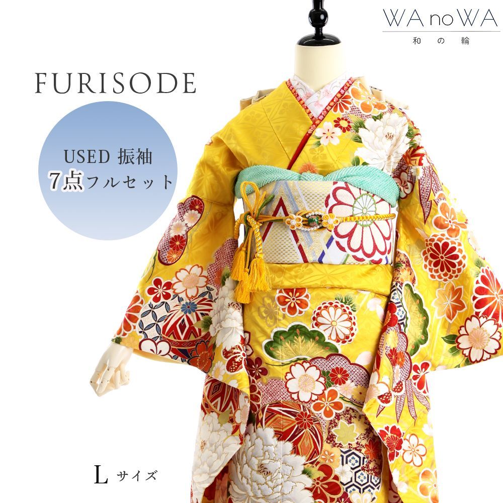 振袖 振袖フルセット 振袖セット 黄色 古典柄 牡丹 鞠 7点フルセット レディース Lサイズ WA-F-76