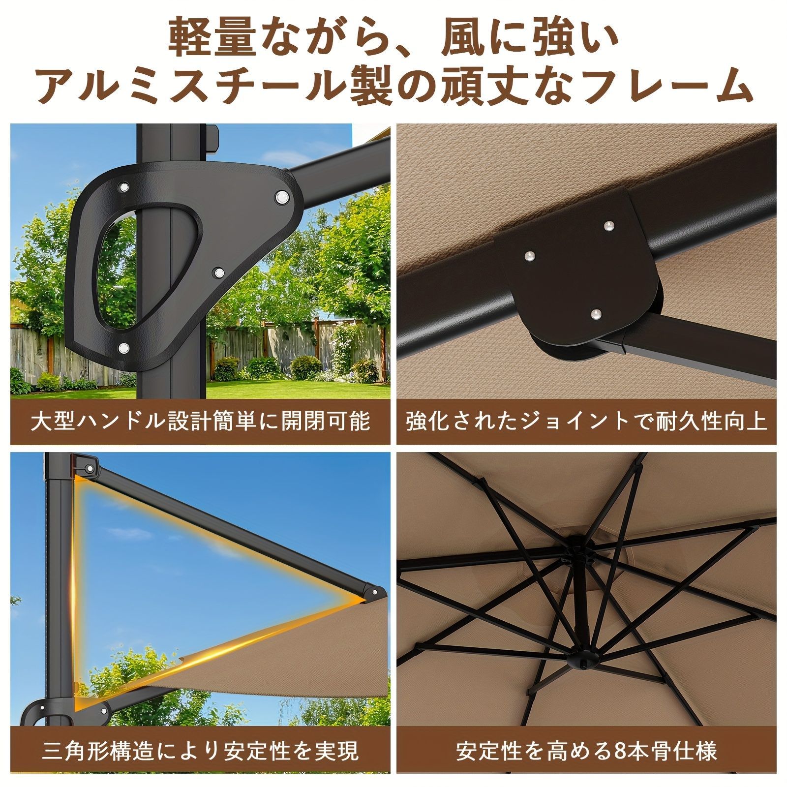 パラソル ガーデンパラソル 300 cm 大型 ハンギングパラソル 風に強い 360°回転 角度調節 日よけ 撥水 UV加工 ビーチパラソル 庭 カフェ テラス 日傘 アウトドア 商業利用 ガーデンファニチャー 選べる形 丸型 四角型